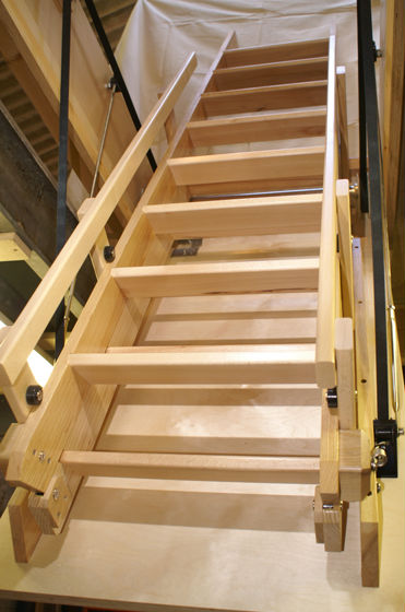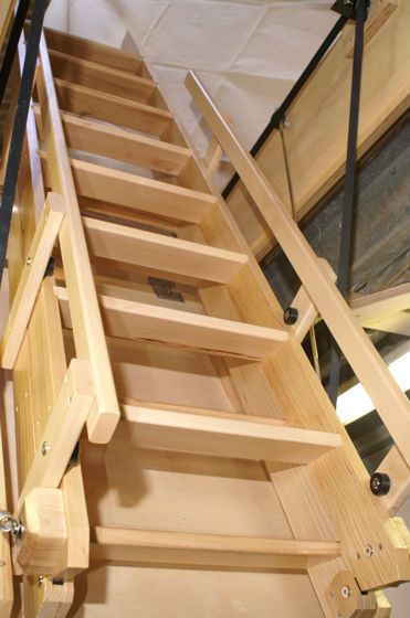 Our ladders are made of Ash and Beech as standard, and use a reliable radio control to reveal a beautiful wooden stairway.  All our units can also be manually overridden, so even in the event of a power failure they can still be operated.